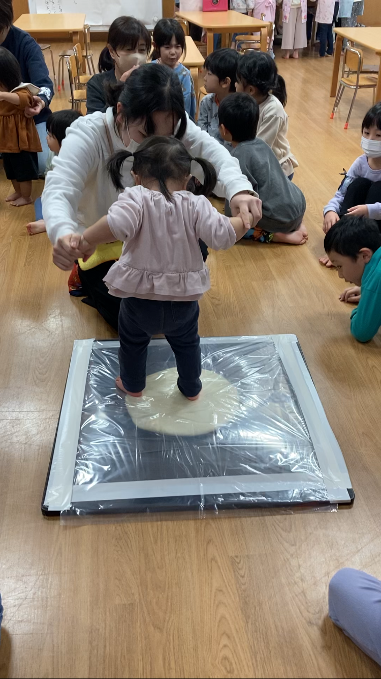 めばえ組さんもふみふみ。見てみて上手に踏めてるでしょ?