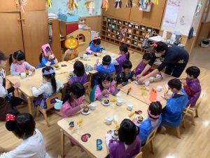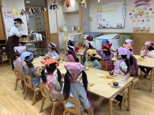 保育園でも各クラスでパーティをしました。今回はにじ組さんの様子をお届け!