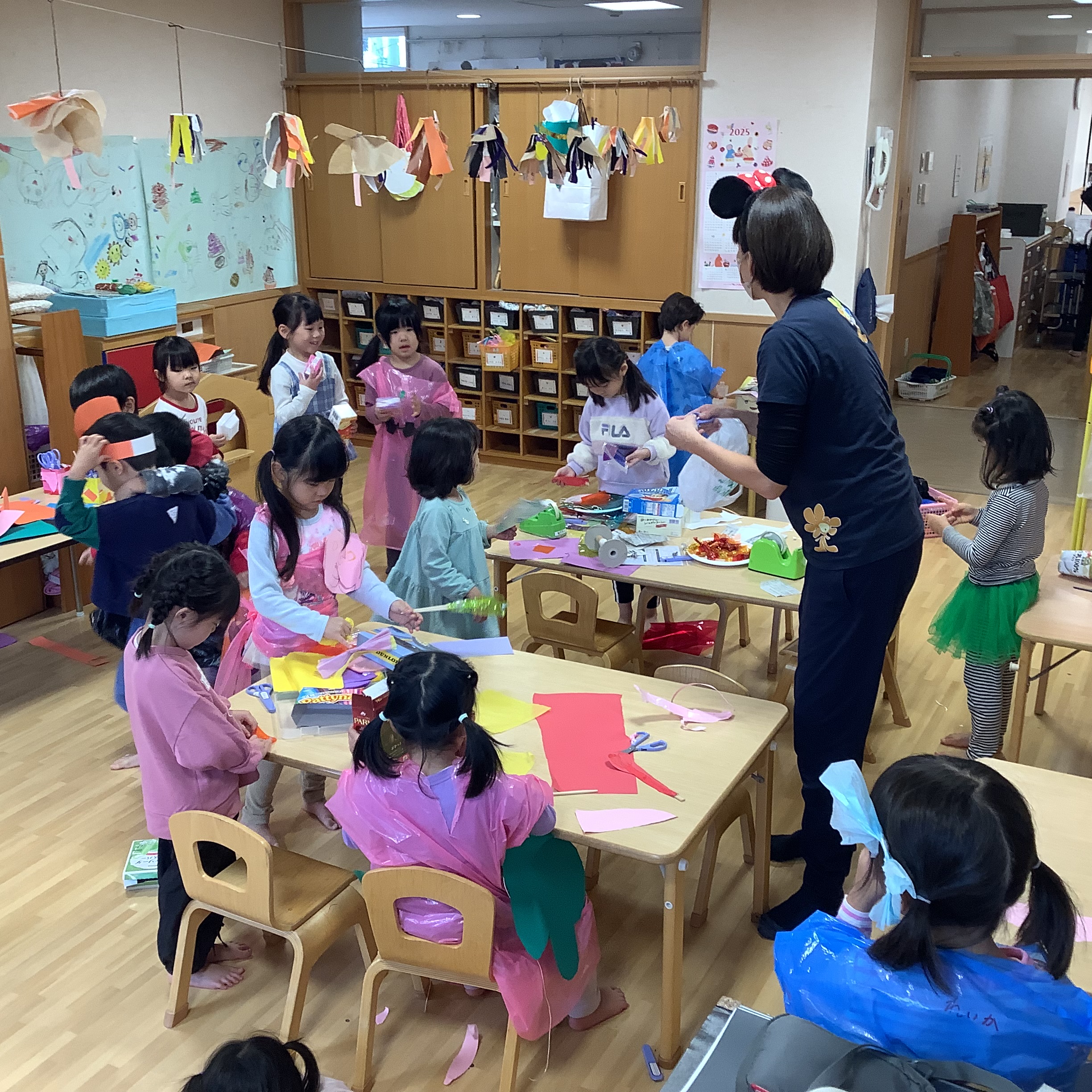 保育園でも各クラスでパーティをしました。今回はにじ組さんの様子をお届け!
