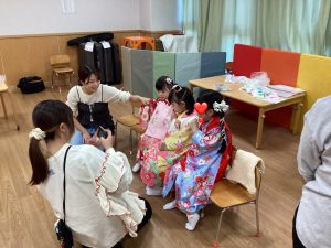 子ども達が日本の伝統文化に触れることができるイベント。着物や髪飾り、小道具(!!)などがお借りでき、かわいい&かっこいいポーズでキメた姿を写真におさめてもらっています。