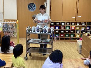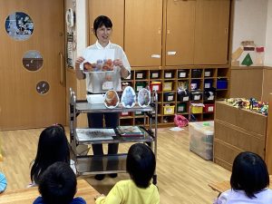 保育園では定期的に給食室の先生から食事・食材について教えてもらう時間があります。