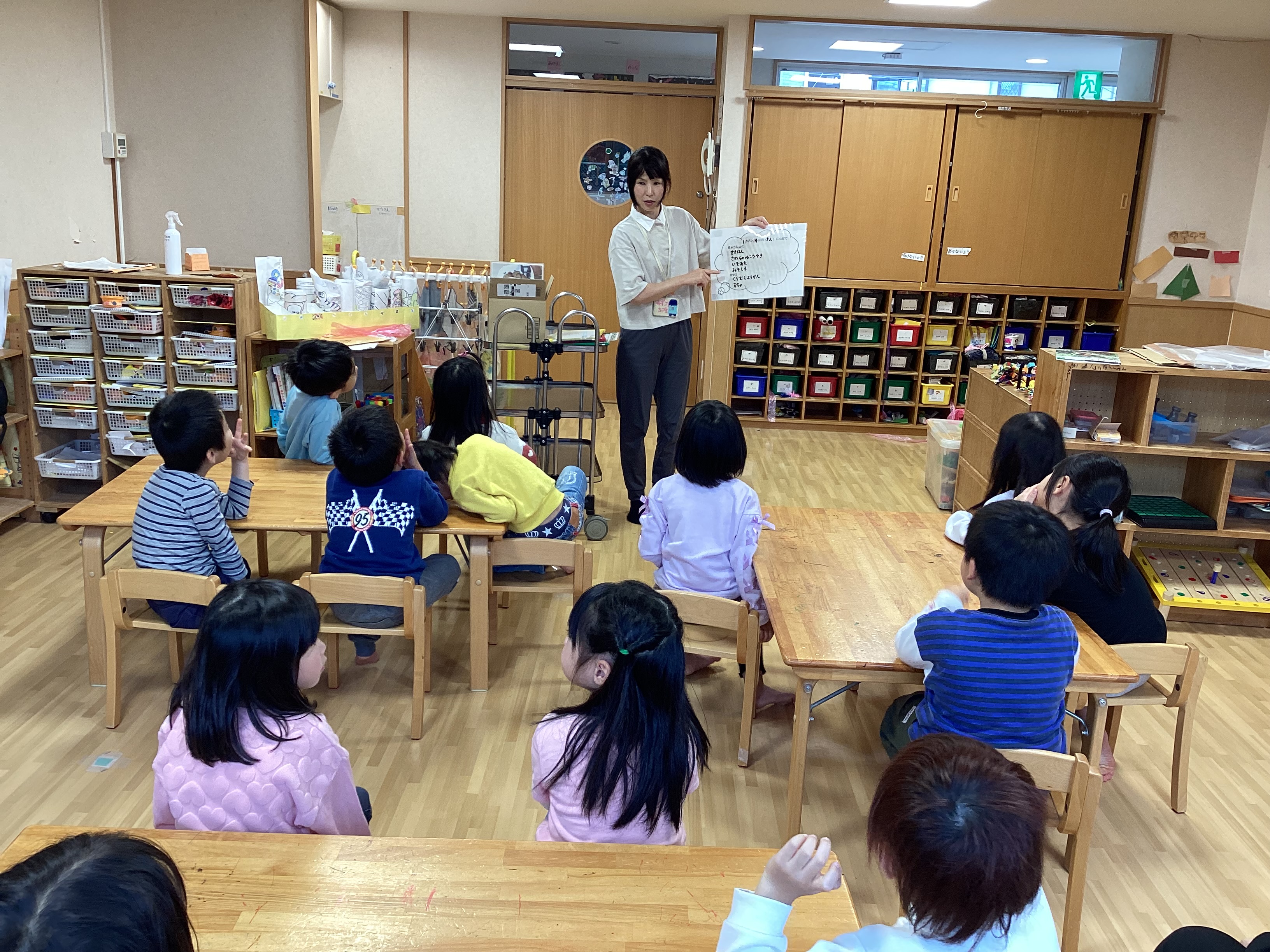 保育園では定期的に給食室の先生から食事・食材について教えてもらう時間があります。