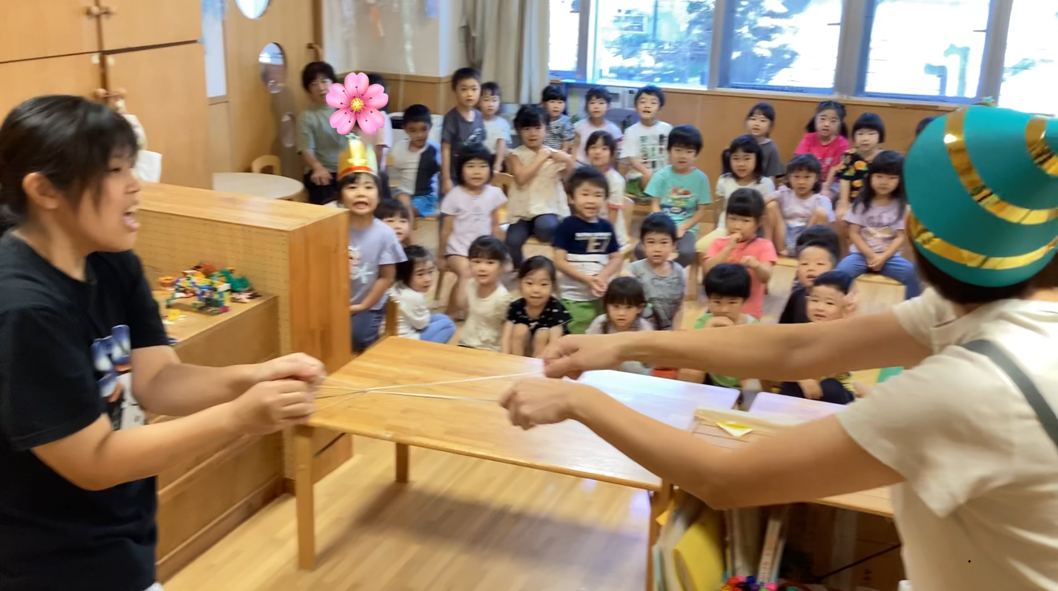 一方、幼児組は先生たちのマジックショーが行われて熱視線が注がれていました。マジックの結果を予想できるもののタネがなんなのかには気づけなかった様子。