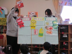 食品群を赤、黄、緑レンジャーに例えてお話しました。
