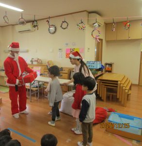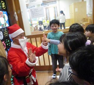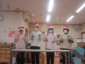 ハンドベルや鈴、タンバリンなど様々な楽器が登場すると「知ってる!」と興味津々🌟ジングルベル・赤鼻のトナカイ・あわてんぼうのサンタクロースの演奏に合わせて元気に歌ってくれる子どもたちでした!