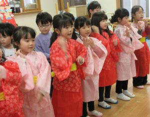 にじ組さんたちが合奏と踊りで優雅な姿を見せてくれました。