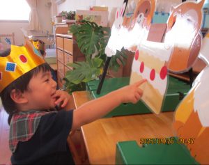保育士からのプレゼントはパネルシアターです。動物はどこに隠れているかな?