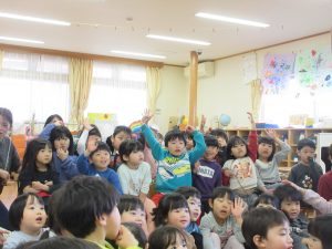 だあれかな?の問いかけにみんな、身を乗り出して元気な声で応えてくれました。