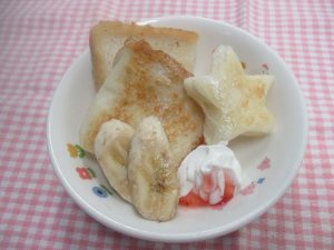 午後のおやつには、卵不使用のフレンチトーストを作りました。