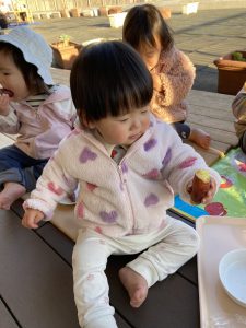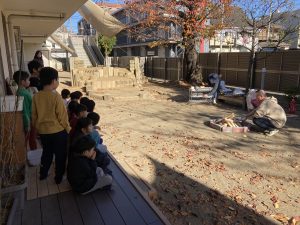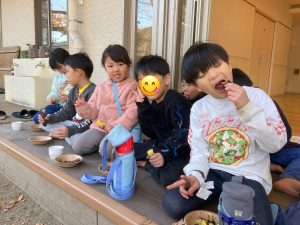 今年もこの季節がやってきました。芋掘りから帰ってきたときから子どもたちは「早く焼き芋食べたい!」とこの日を楽しみにしていて、朝からみんなどこか落ち着かない様子です。