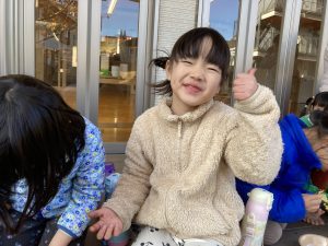 芋洗いを終えると「ぴかぴか!」と嬉しそうに芋を見せてくれています。